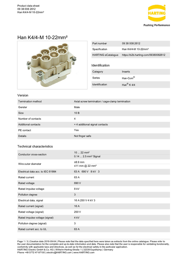 Wkładka stykowa Harting 09380082612 09 38 008 2612, 1 szt.