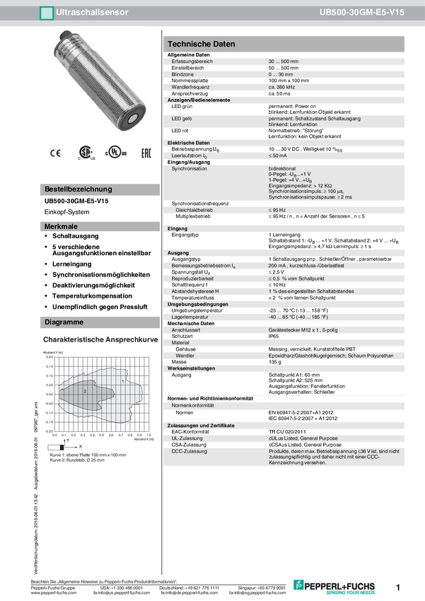 Czujnik ultradźwiękowy Pepperl+Fuchs 097968 1 szt.