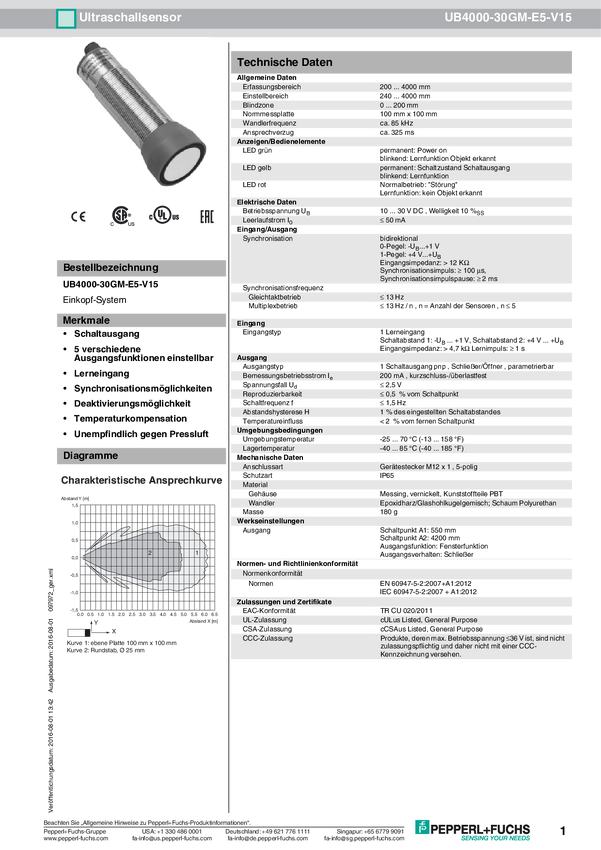 Czujnik ultradźwiękowy Pepperl+Fuchs 097972 1 szt.