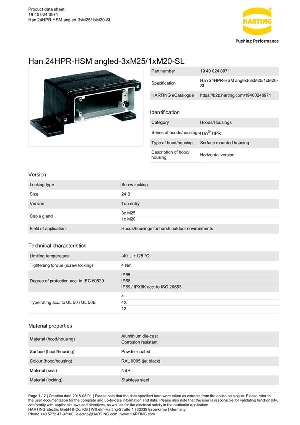 Obudowa podstawowa 19 40 024 0971 Harting 1 szt.