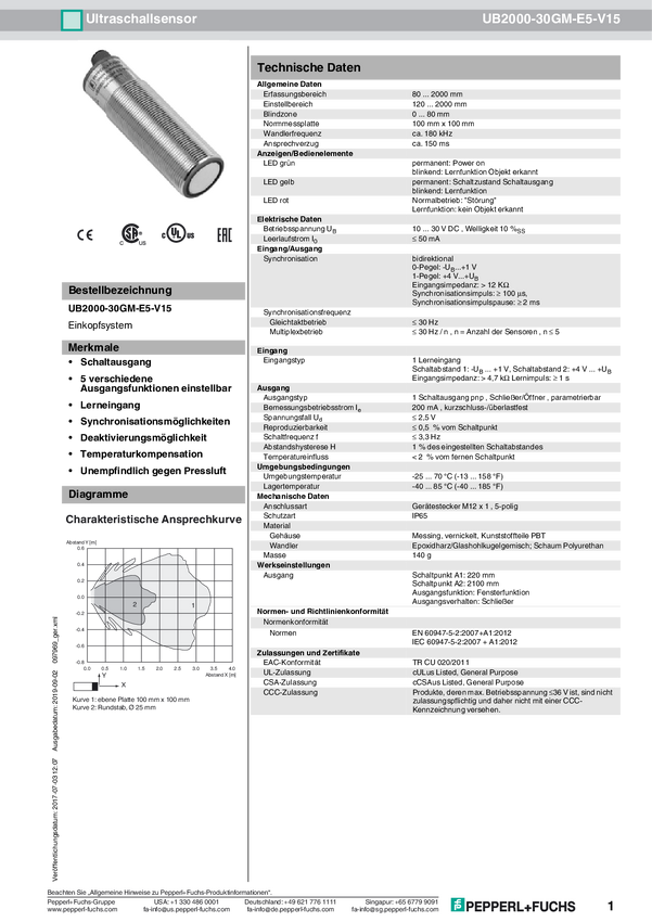 Czujnik ultradźwiękowy Pepperl+Fuchs 097969 1 szt.