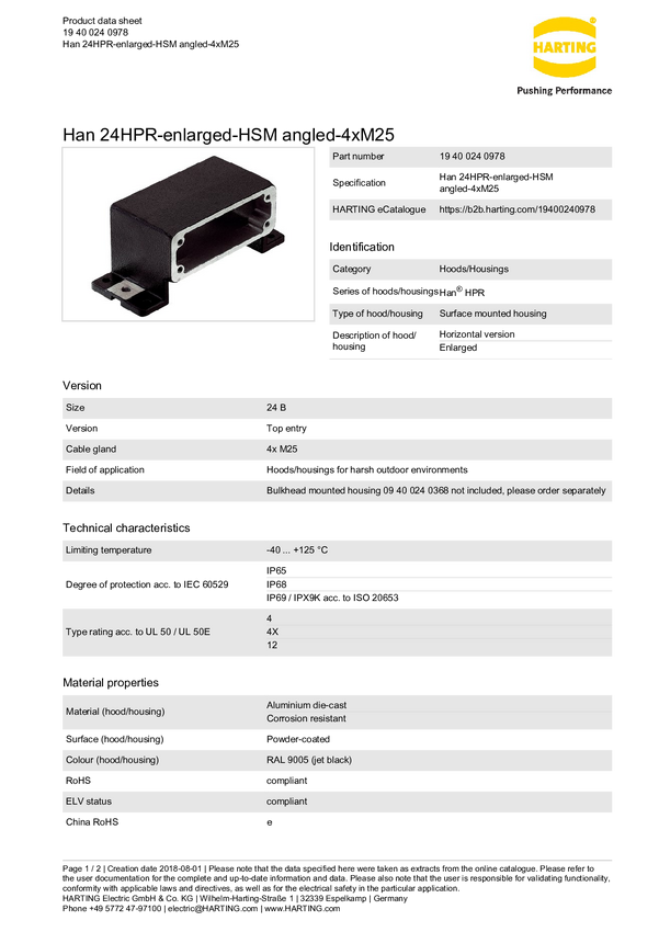 Obudowa podstawowa 19 40 024 0978 Harting 1 szt.