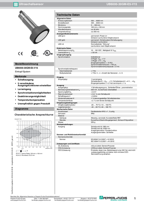 Czujnik ultradźwiękowy Pepperl+Fuchs 097966 1 szt.