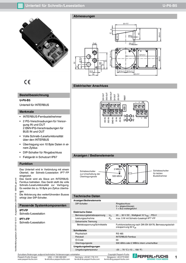 Pepperl+Fuchs 099100 Jednostka analizująca RFID U-P6-B5 1 szt.