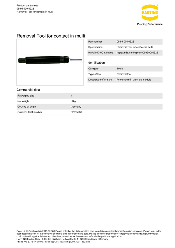 Harting 09990000328 Narzędzie do demontażu 1 szt.