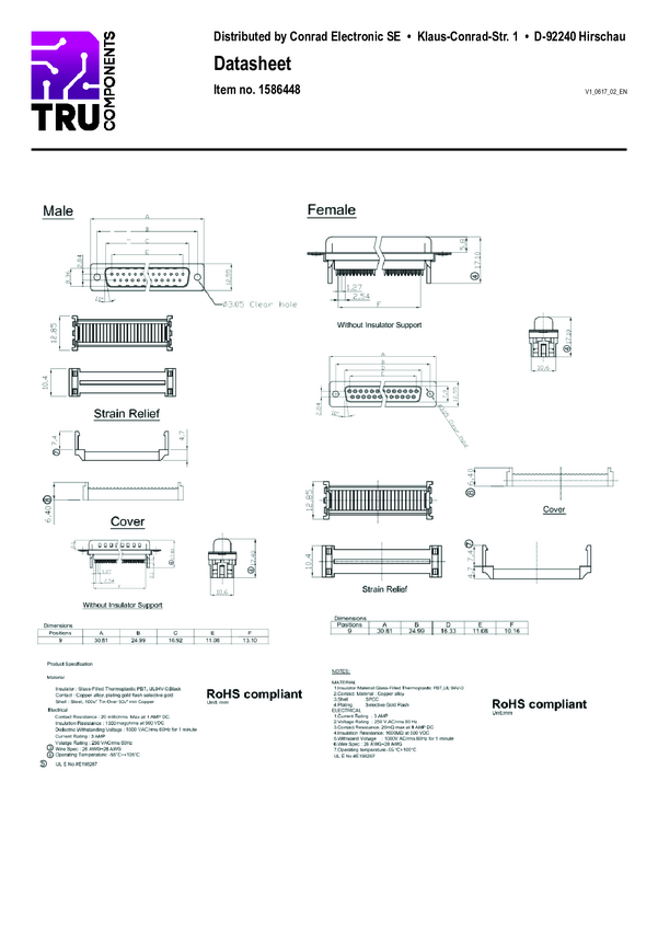 TRU COMPONENTS 1586448 Listwa żeńska D-Sub TC-A-DFF 09LPIII/Z-203, styki: 9, 1 szt.