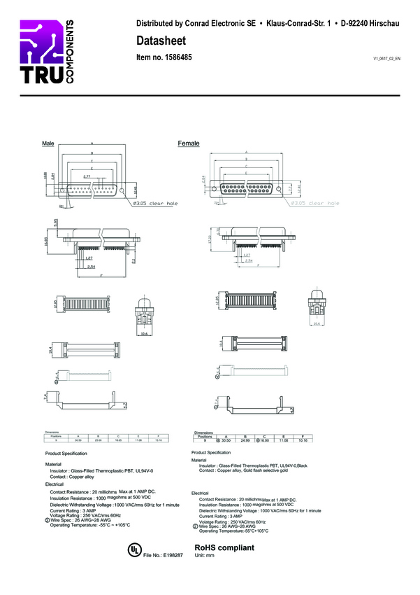 TRU COMPONENTS 1586487 Listwa męska D-Sub TC-A-DSF 09LPIII/FP-203, styki: 9, 1 szt.