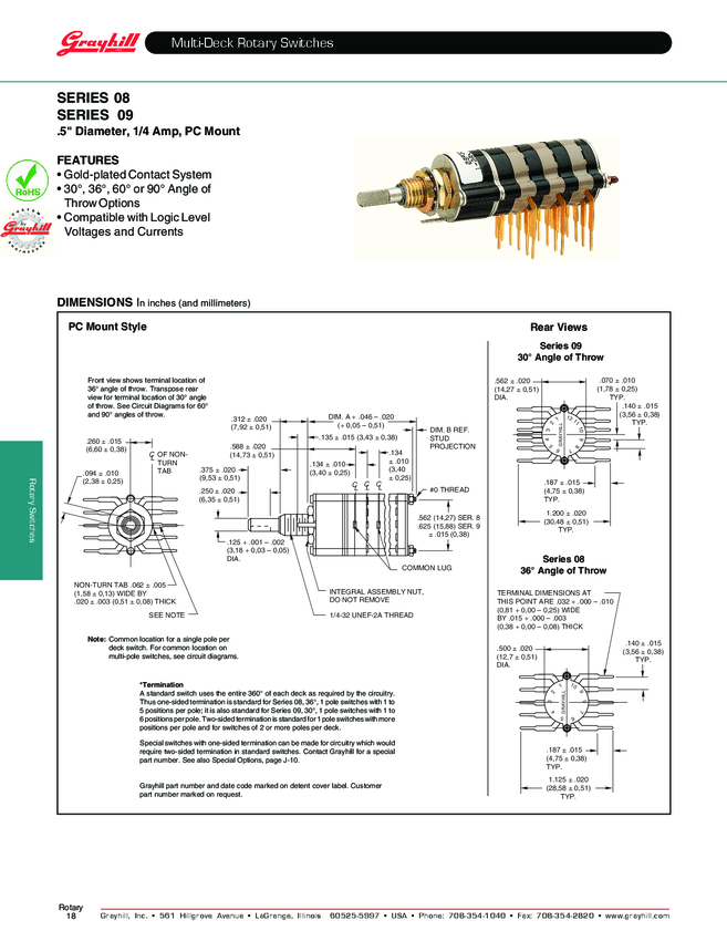 Switch Rotary SP12T 12 Flatted Shaft Solder Lug 0.25A 115VAC 28VDC