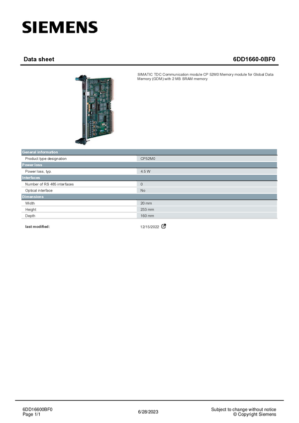 Siemens 6DD1660-0BF0 Moduł kontrolera PLC