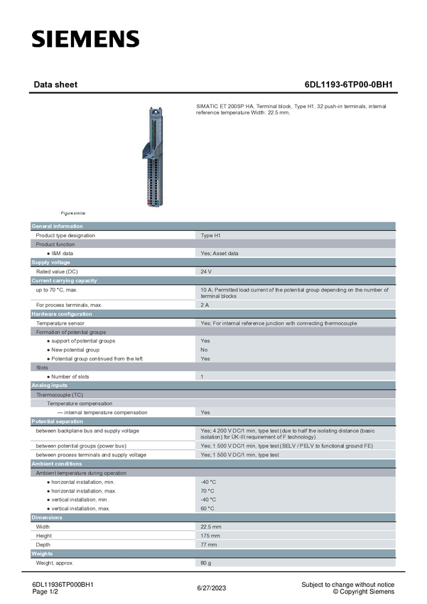 Siemens 6DL1193-6TP00-0BH1