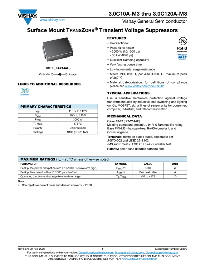 Surface Mount TRANSZORB® Transient Voltage Suppressors