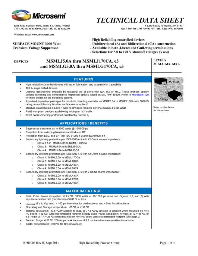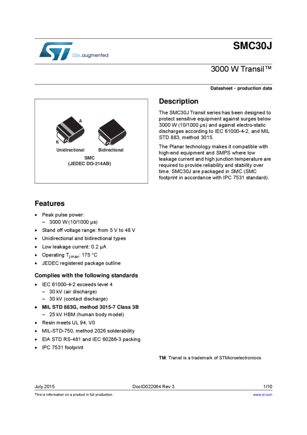 SMAJ TVS Family Datasheet