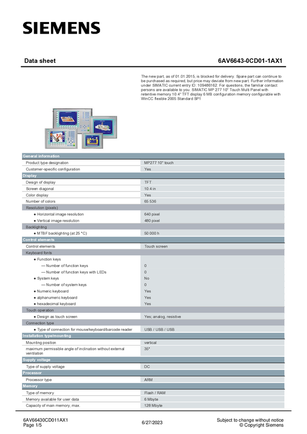 Zestaw startowy Siemens 6AV6643-0CD01-1AX1 6AV66430CD011AX1