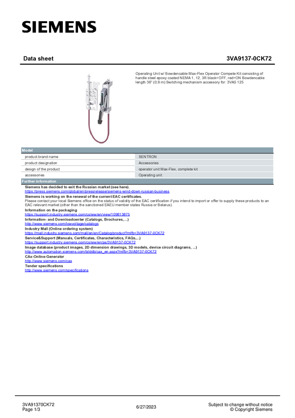 Zestaw akcesoriów Siemens 3VA9137-0CK72 1 szt.