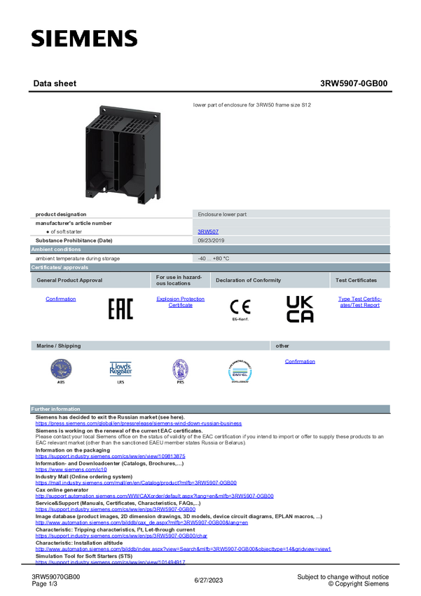 Dolna część obudowy Siemens 3RW5907-0GB00 3RW59070GB00