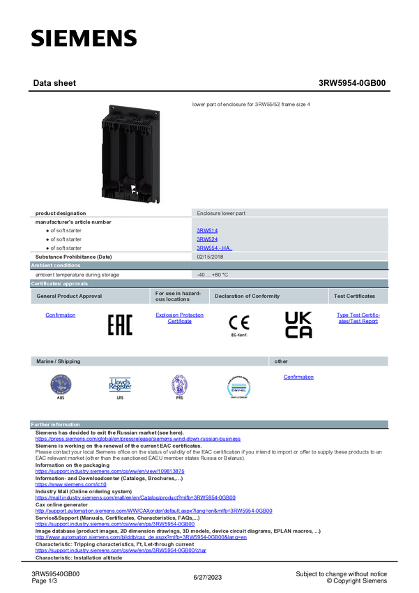 Dolna część obudowy Siemens 3RW5954-0GB00 3RW59540GB00