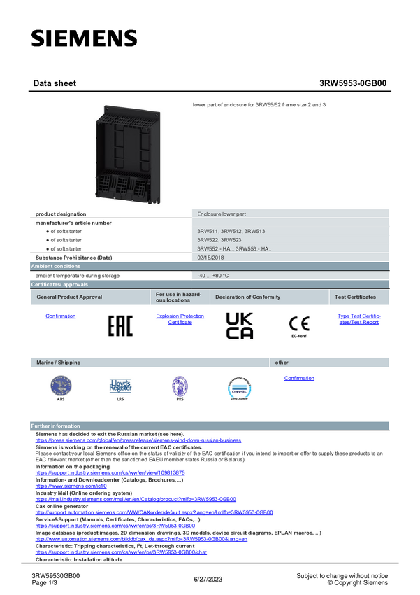 Dolna część obudowy Siemens 3RW5953-0GB00 3RW59530GB00