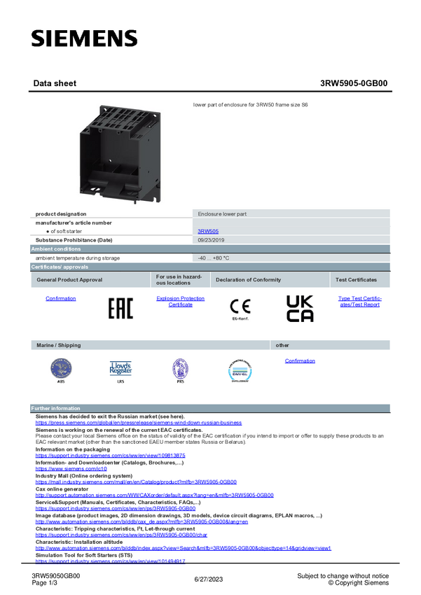 Dolna część obudowy Siemens 3RW5905-0GB00 3RW59050GB00