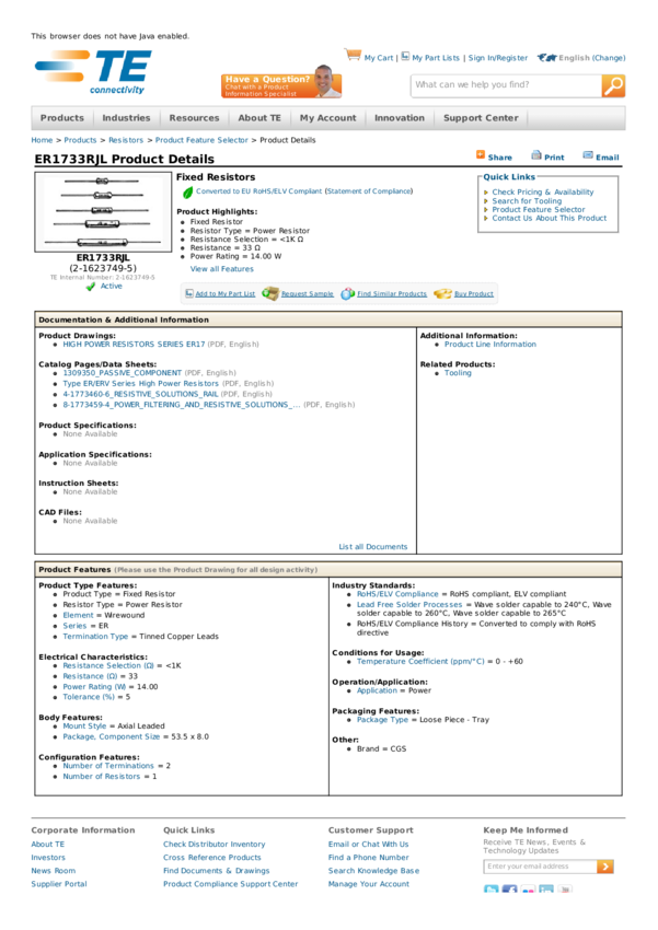 Res Wirewound 33 Ohm 5% 11W 0ppm/°C to ±200ppm/°C Conformal AXL Thru-Hole Tray