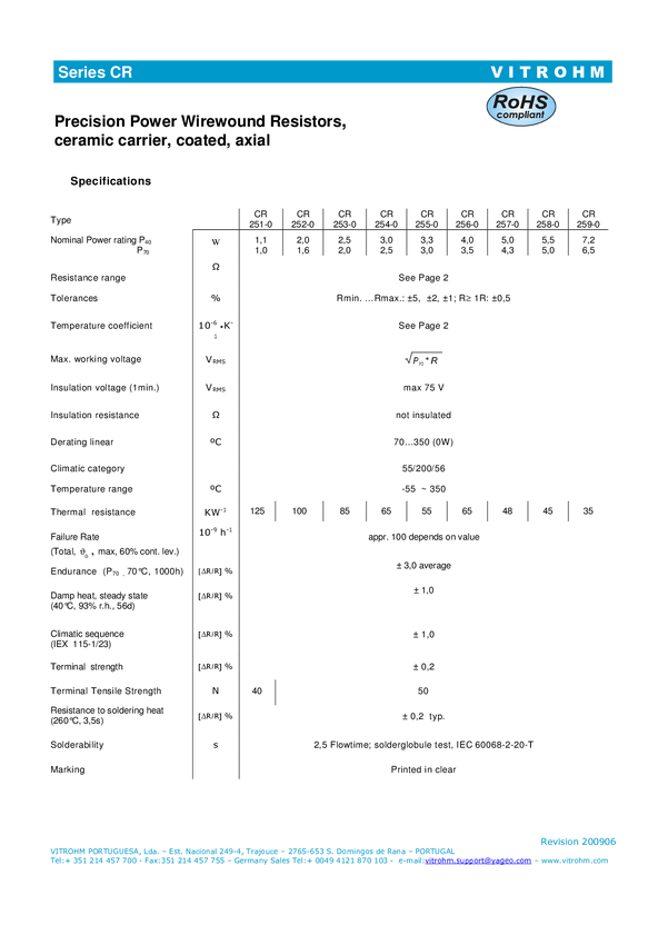 Rezystor mocy CR Rezystor mocy CR254-05T 0R47 0.47 Ω osiowy THD 2.5 W VitrOhm CR254-05T 0R47 1 szt.