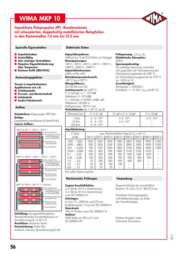 Kondensator Wima MKP 10 10,0uF 250VDC 10%