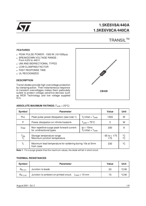 Dioda Transil dwukierunkowa 10,50V~11,60V/96,0A 1,5kW