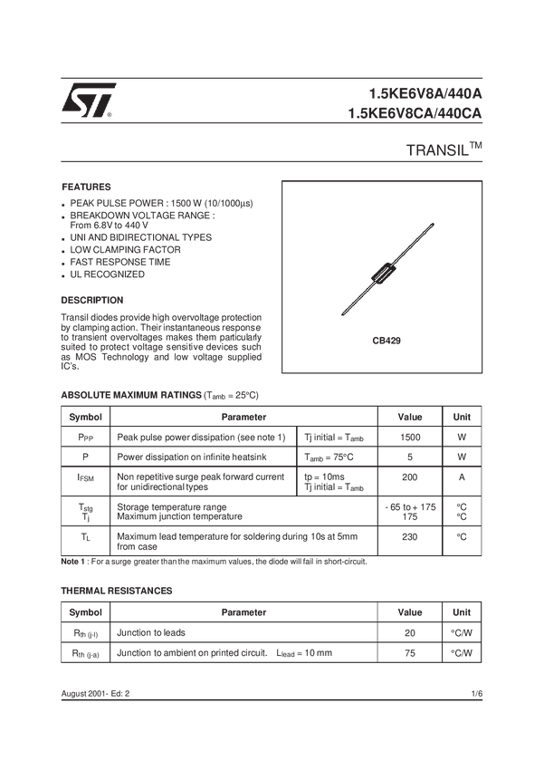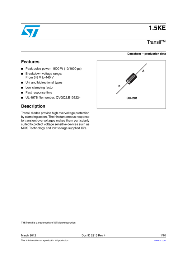 Dioda TVS Taiwan Semiconductor 1.5KE440A 1.5KE440A, 1 szt.