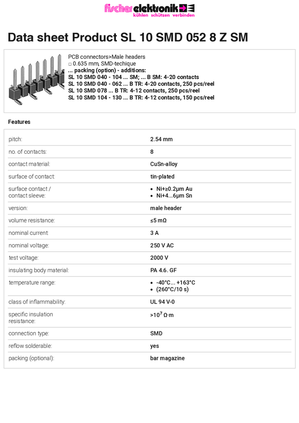 Fischer Elektronik 10047155 Listwa kołkowa, męska, standardowa 10 szt.