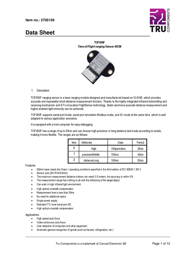 TRU COMPONENTS TC-10093140 Czujnik TC-10093140