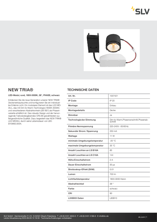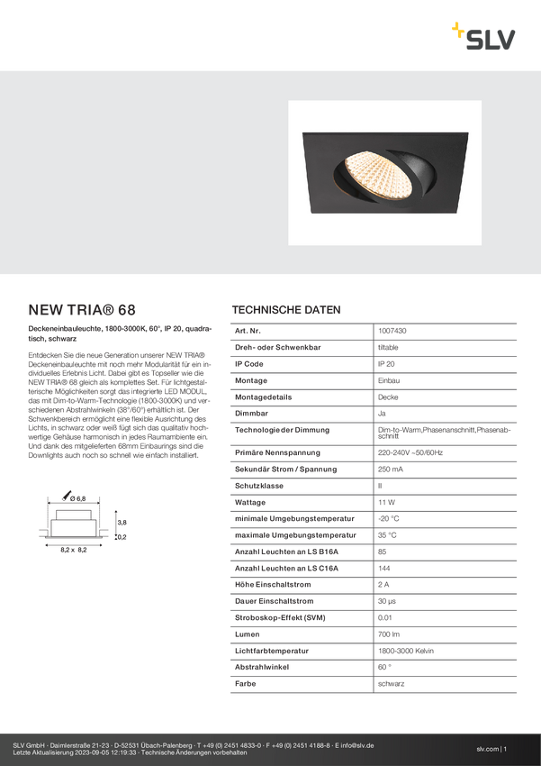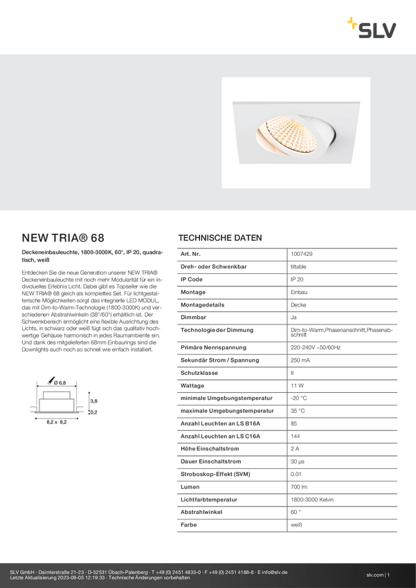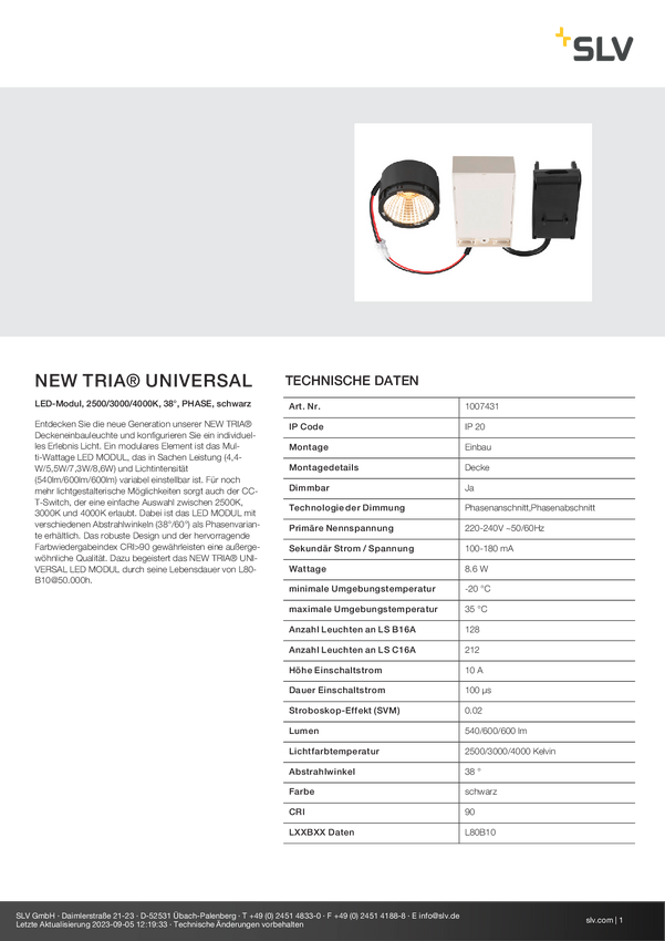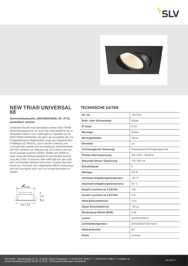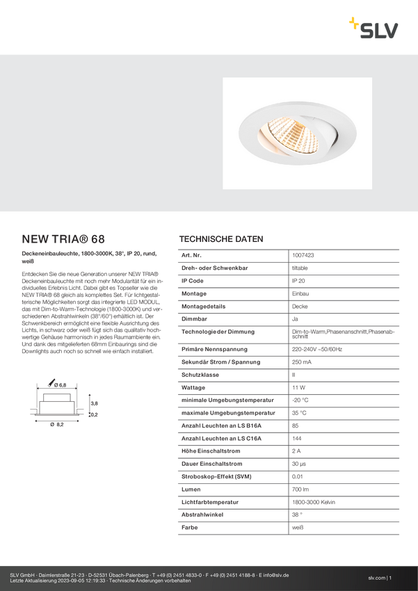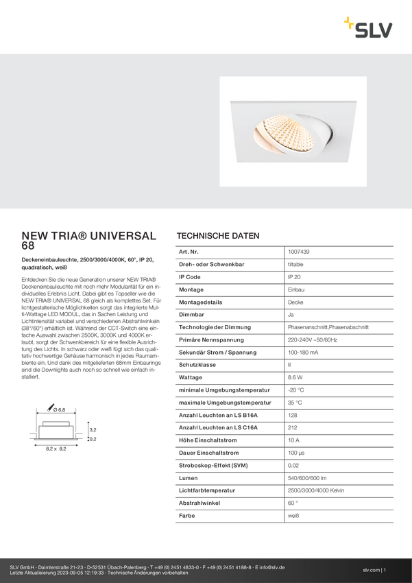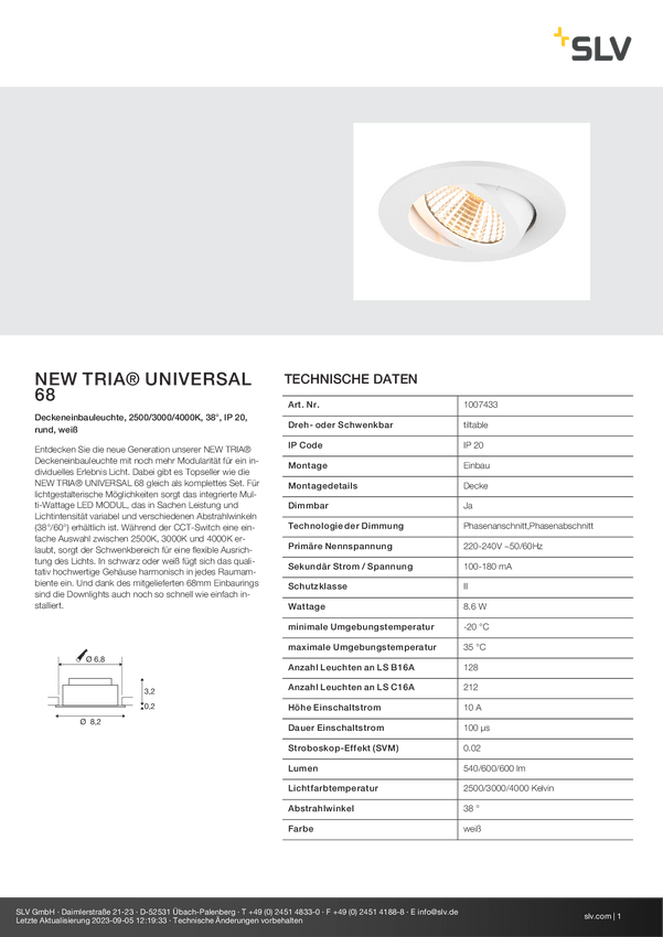 Oświetlenie wewnętrzne LED SLV NEW TRIA UNIVERSAL 68 1007438 8.6 W