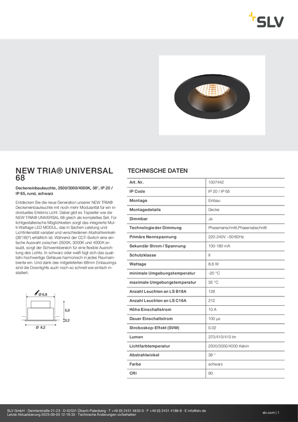 Oświetlenie wewnętrzne LED SLV NEW TRIA UNIVERSAL 68 1007437 8.6 W