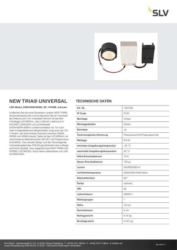 Oświetlenie wewnętrzne LED SLV NEW TRIA UNIVERSAL 1007432 8.6 W