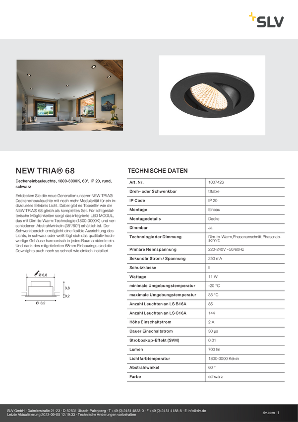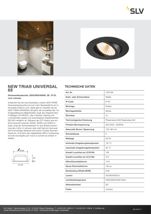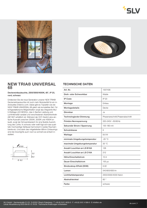 Oświetlenie wewnętrzne LED SLV NEW TRIA UNIVERSAL 68 1007434 8.6 W