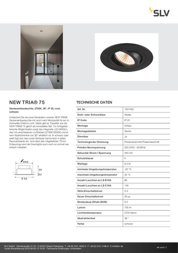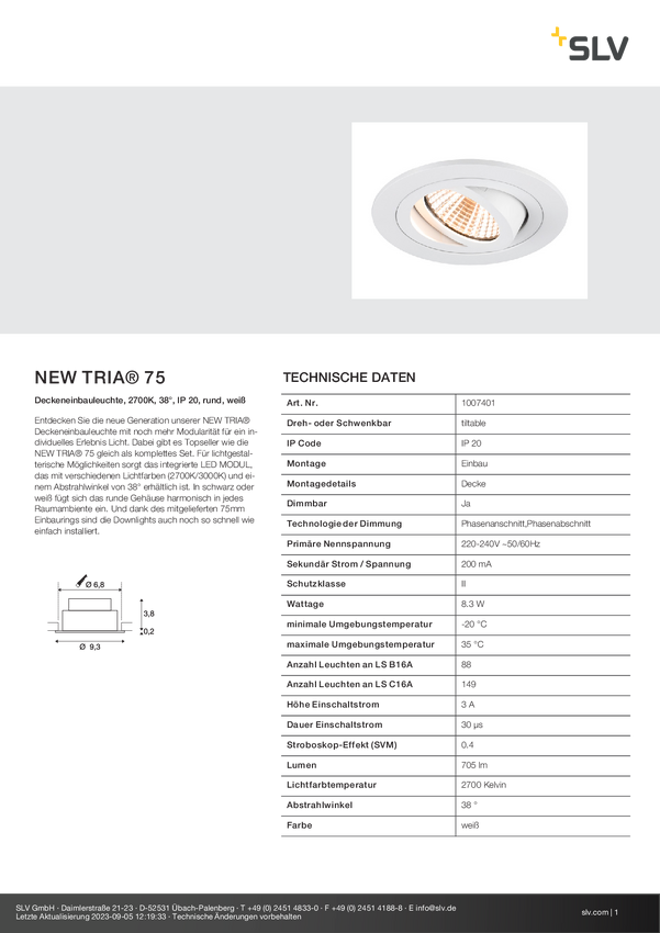 Oświetlenie wewnętrzne LED SLV NEW TRIA 75 1007402 8.3 W