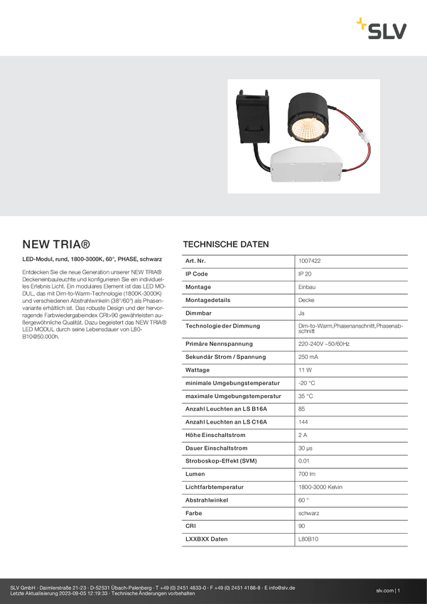 Oświetlenie wewnętrzne LED SLV NEW TRIA 1007422 11 W