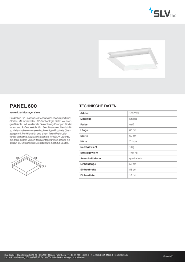SLV Panel 600 1007575 Ramka montażowa biały