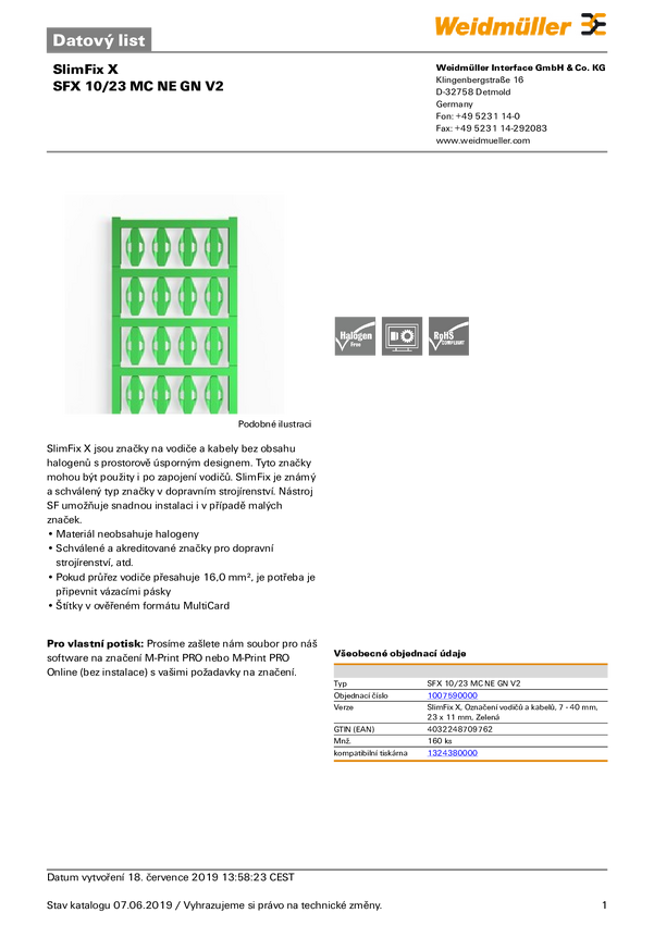 Oznacznik na przewody Weidmüller SFX 10/23 NE GN V2 1007590000, montaż: opaska kablowa, 5 x 23.50 mm, 160 szt.