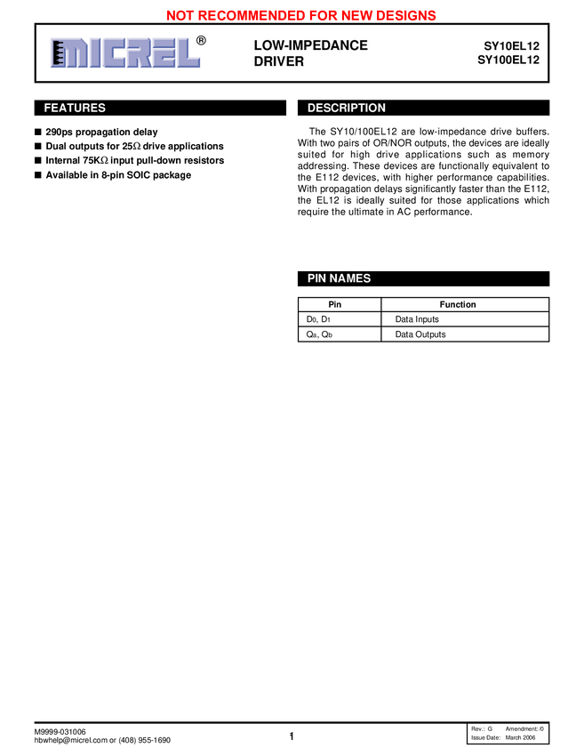 SY10/100EL12 - Low-Impedance Driver