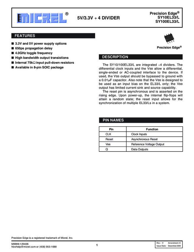 SY10/100EL33/L - 5V/3.3V ÷4 Divider