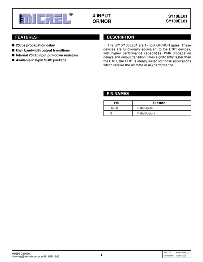 SY10/100EL01 - 4-Input OR/NOR