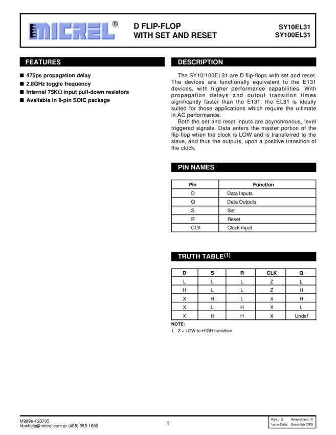 SY10/100EL31 - D Flip-Flop with Set and Reset (11/11/2015)