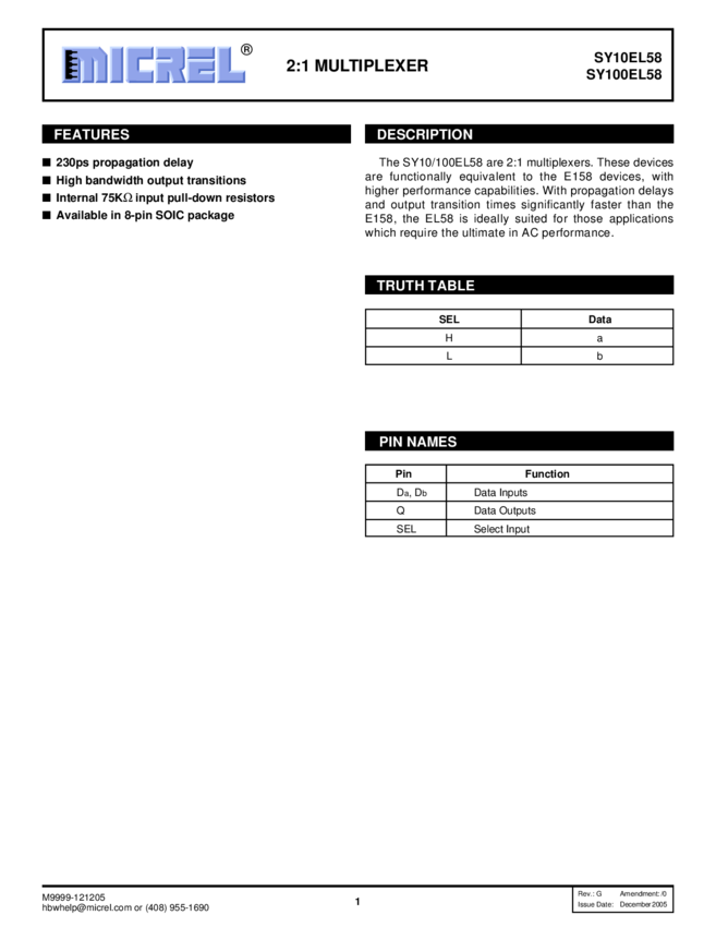 SY10/100EL58 - 2:1 Multiplexer (11/11/2015)
