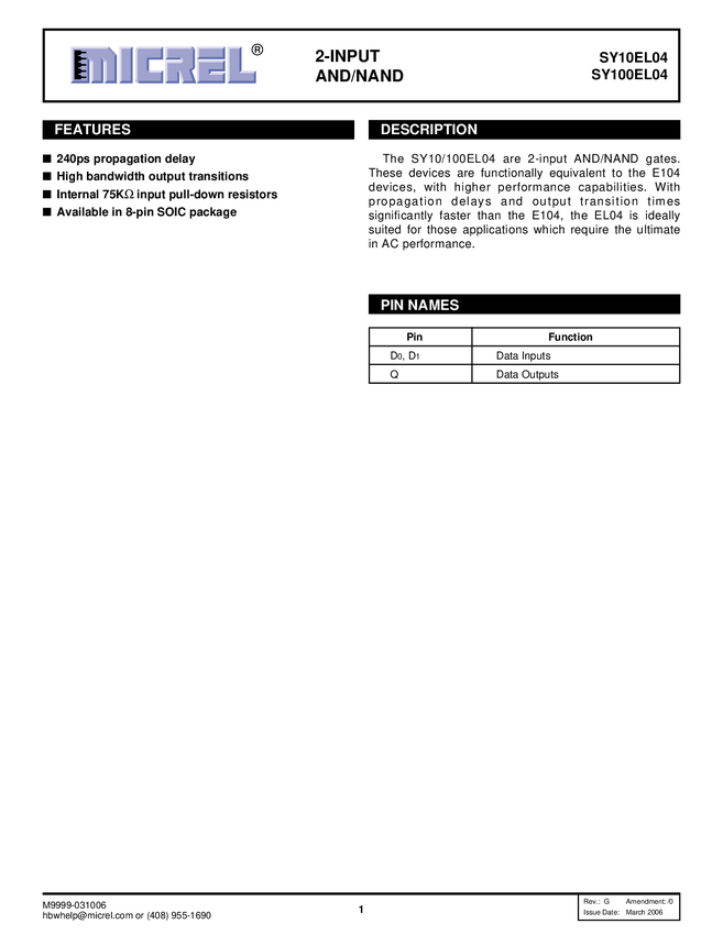 SY10/100EL04 - 2-Input AND/NAND