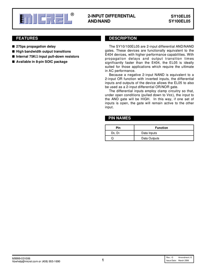 SY10/100EL05 - 2-Input Differential AND/NAND