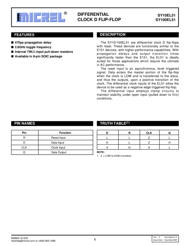 SY10/100EL51 - Differential Clock D Flip-Flop (11/11/2015)