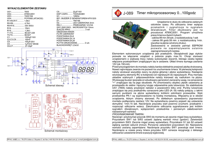 J-089N Timer mikroprocesorowy 0....100godz - zestaw do montażu