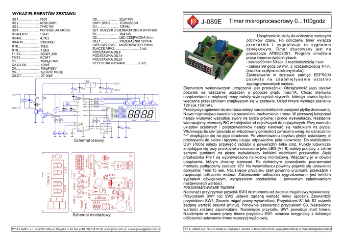 J-089E Timer mikroprocesorowy 0....100godz - zestaw do montażu