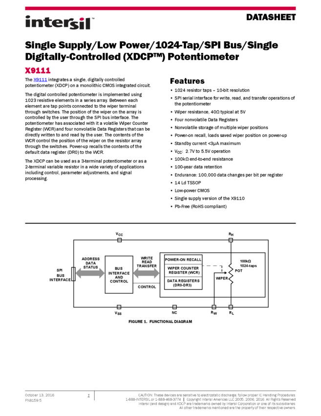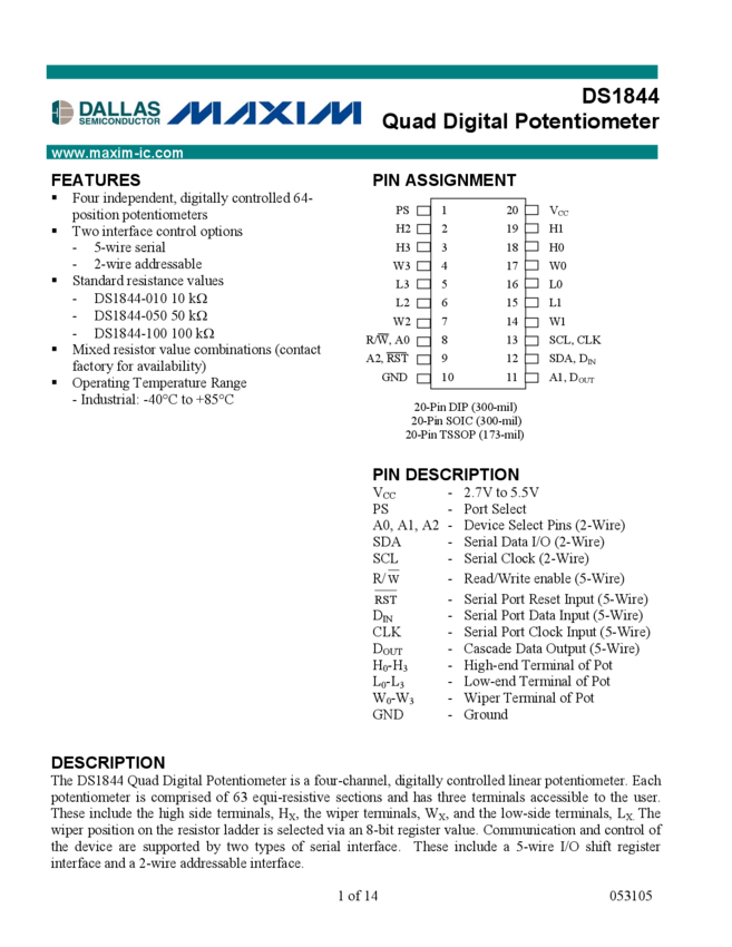 Digital Potentiometer 1024POS 100KOhm Single 14-Pin TSSOP