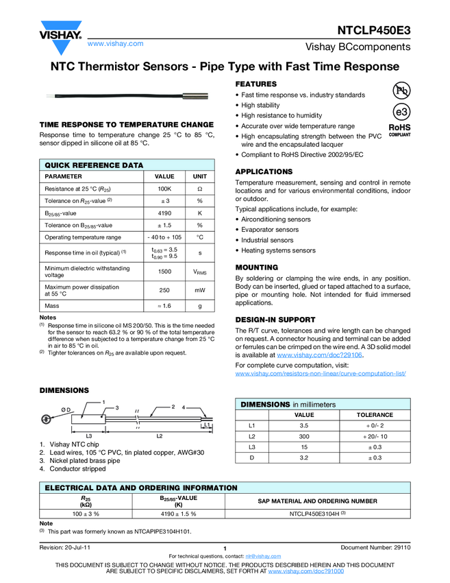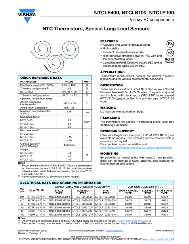 Thermistor NTC 100KOhm 3% 2-Pin Cardboard Box