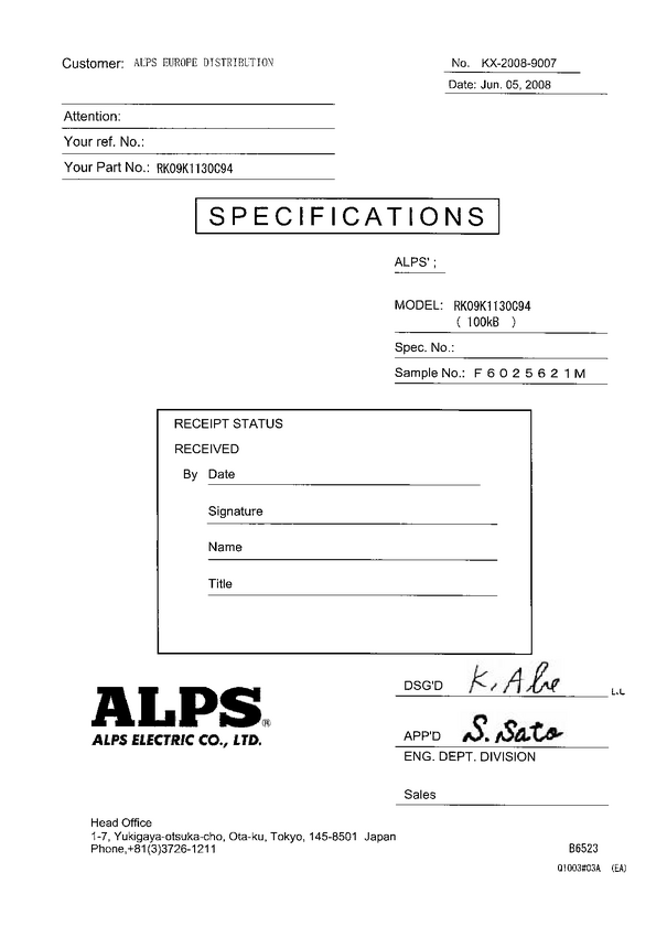 100kohm B-liniowy; bez zapadki-detal PMRK09K1130-F25-C0-B104 pion ośka 6mm ścięta FL L-12mm; W=4,5mm; dł.17,5mm;LM1=25mm